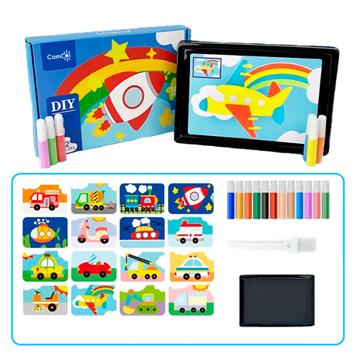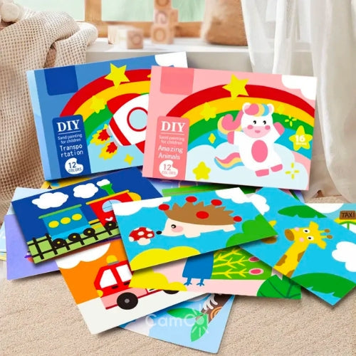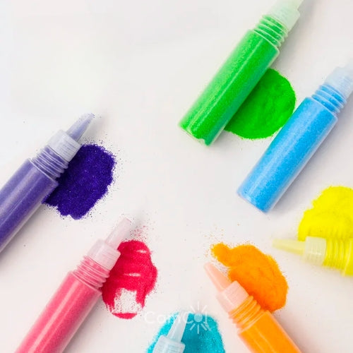 A cada desenho preenchido com areia colorida, seu pequeno exercita a criatividade e cognição de uma maneira divertida e envolvente!