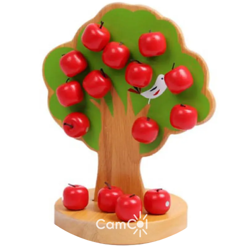 Com várias maçãs magnéticas de cores vivas, as crianças são incentivadas a escolher frutas e colocá-las na árvore.