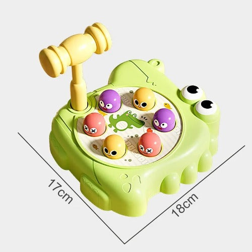 O objetivo do jogo é simples: as crianças podem usar um martelinho para bater suavemente nos animais que saltam da base, oferecendo uma experiência tátil e sensorial.