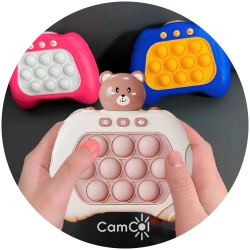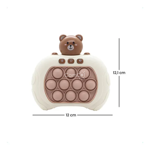 Funciona como uma mini máquina de jogo portátil, com luzes que acendem em padrões aleatórios. O desafio é evitá-las com rapidez, enquanto a textura das bolhas garante uma experiência tátil divertida!