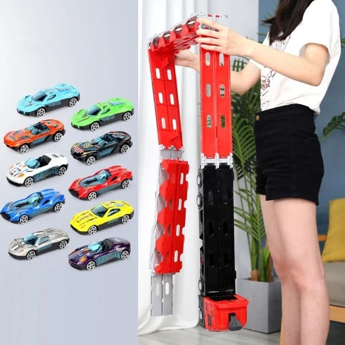 Com cores vibrantes, esses carros são ótimos para corridas de alta velocidade. As crianças podem usá-los na pista de corrida de 81 polegadas incluída no conjunto, criando corridas emocionantes cheias de reviravoltas.