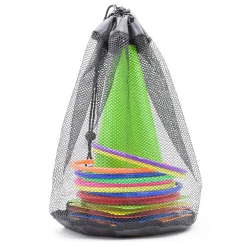 Cada cone é uma oportunidade de aprimorar habilidades motoras finas e treinar a mira, enquanto o arremesso dos anéis desenvolve a destreza e a concentração.