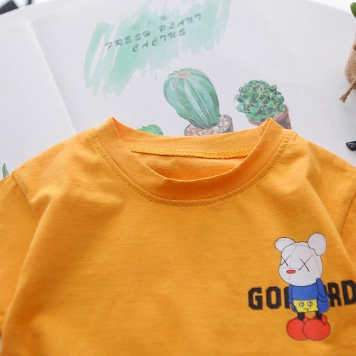 Este conjunto de duas peças oferece uma combinação perfeita de conforto, projetado para manter os pequenos frescos e fofos durante a estação quente. A camiseta de algodão é a peça principal, proporcionando uma sensação suave à pele sensível dos bebês.