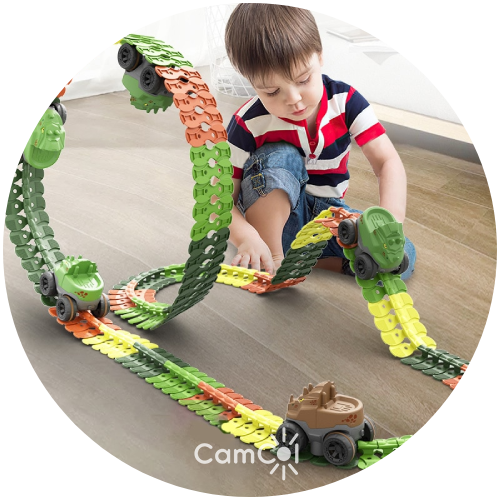 Com peças flexíveis que se moldam a qualquer desafio, os pequenos podem soltar a imaginação e estimular raciocínio lógico criando pistas totalmente únicas!
