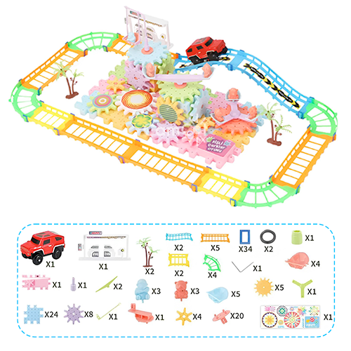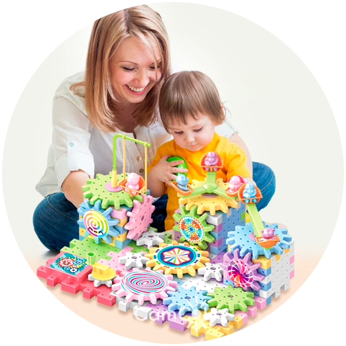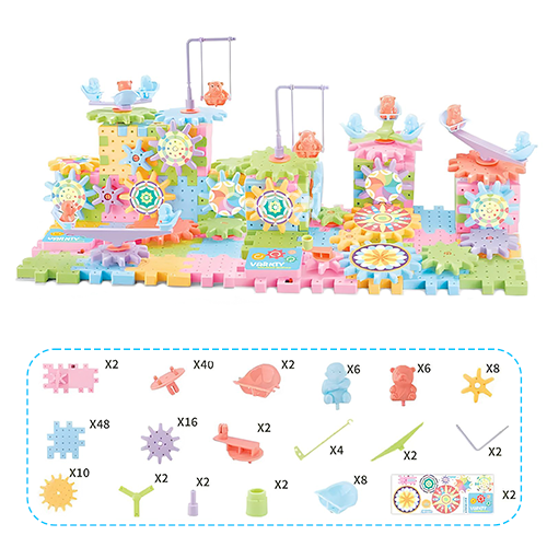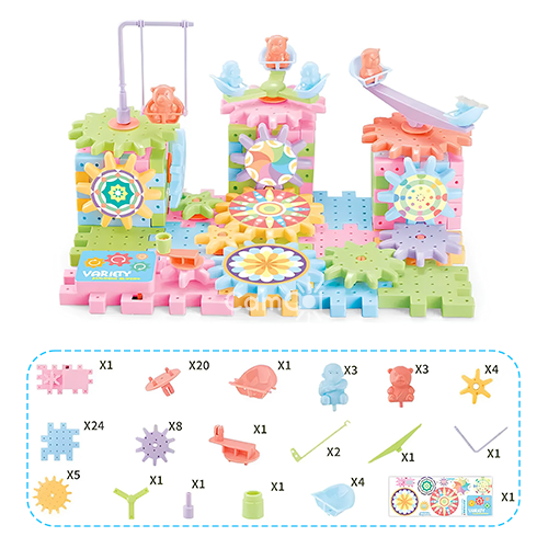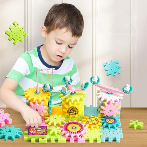 Desenvolva a coordenação motora e a imaginação com as Engrenagens Mágicas. Deixe cada criança criar seu paraíso único de blocos de construção!