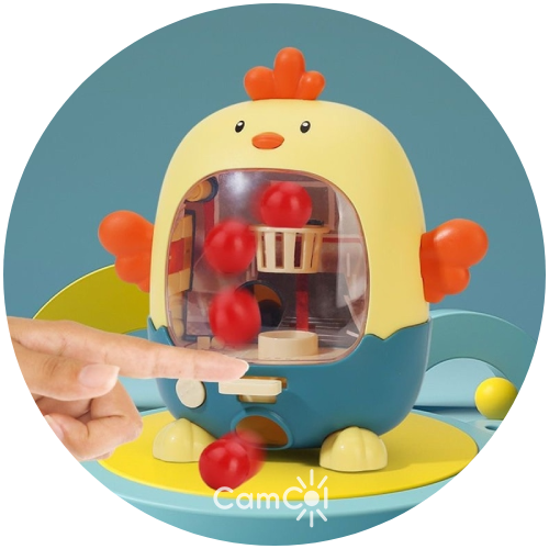 Com um design compacto, esta Mini Máquina é uma maneira de levar a emoção do jogo para qualquer lugar. As crianças podem segurar o brinquedo nas mãos e usar os dedos para lançar as pequenas bolas de basquete.