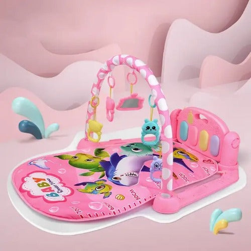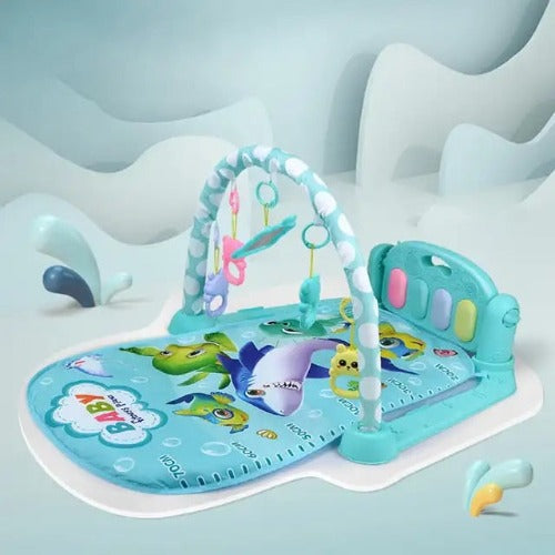 Cada toque dos pezinhos do bebê produz uma melodia suave, de maneira divertida. Essa experiência musical contribui para o desenvolvimento auditivo enquanto os brinquedos leves acima fornecem visuais alegres.