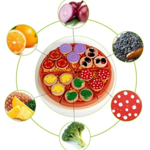este conjunto estimula o jogo de faz de conta. As crianças podem criar suas próprias receitas, servir pizza e frutas aos amigos ou à família de brinquedo, promovendo habilidades sociais e emocionais.