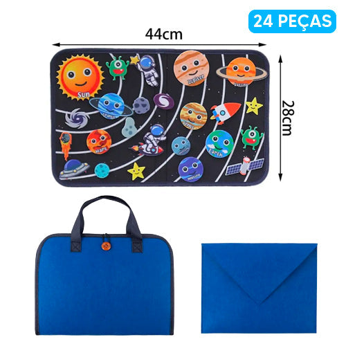 Feito em feltro de alta qualidade com velcro seguro, é leve, portátil e durável. Acompanha seu filho por anos, seja em casa, no carro ou em viagens.